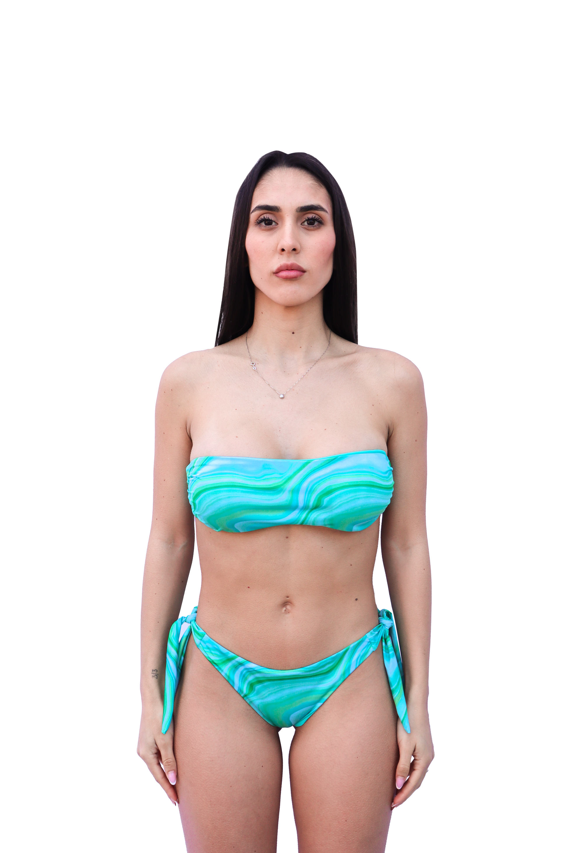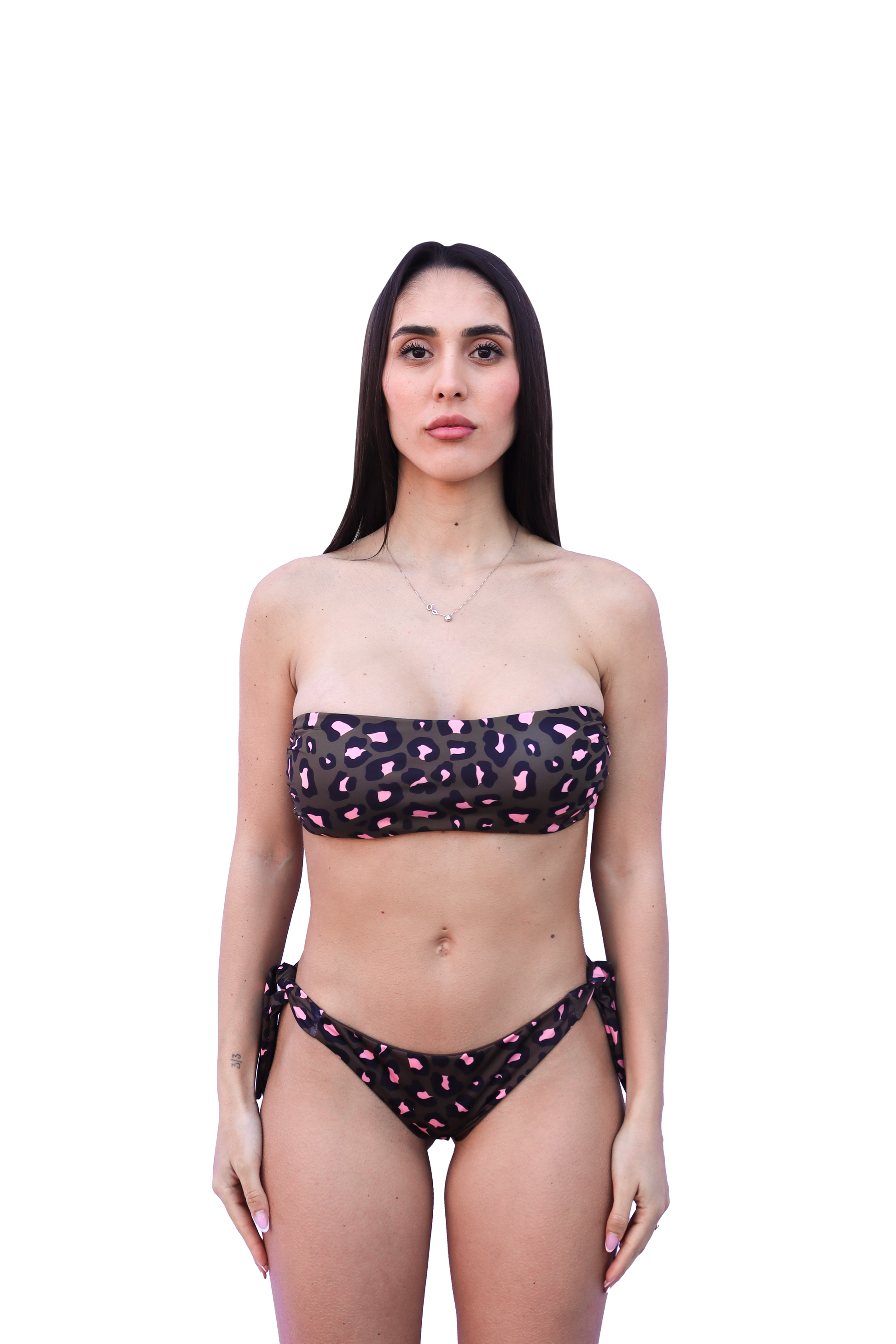 Questo bikini è pensato per chi cerca un look raffinato, comodo e adatto a ogni età. Il top presenta una fascia classica con coppa interna, studiata per offrire sostegno e modellare il seno con naturalezza. La forma non dritta ma leggermente stondata segue le curve del décolleté, donando una vestibilità morbida e una linea più armoniosa e femminile.